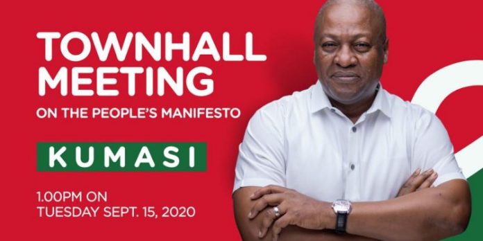 The National Democratic Congress (NDC) is set to hold a town hall meeting in Kumasi on Tuesday, September 15, 2020.