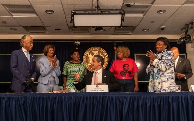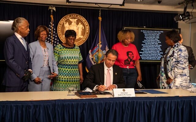 Cuomo was joined at the signing ceremony by the Rev. Al Sharpton, Valerie Bell, the mother of Sean Bell, who was killed by an officer in 2006, and Gwen Carr, the mother of Eric Garner, who was killed by police in New York in 2014.