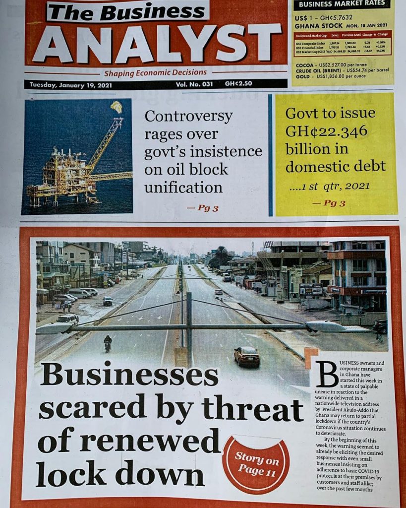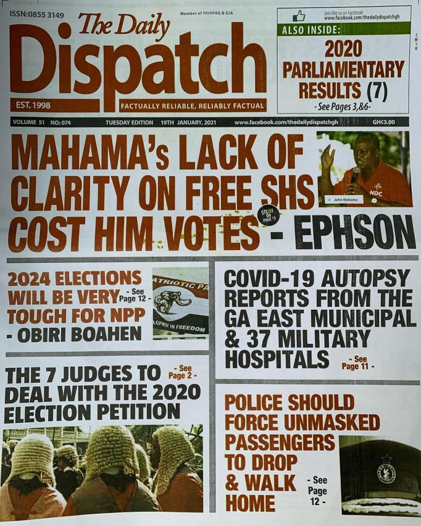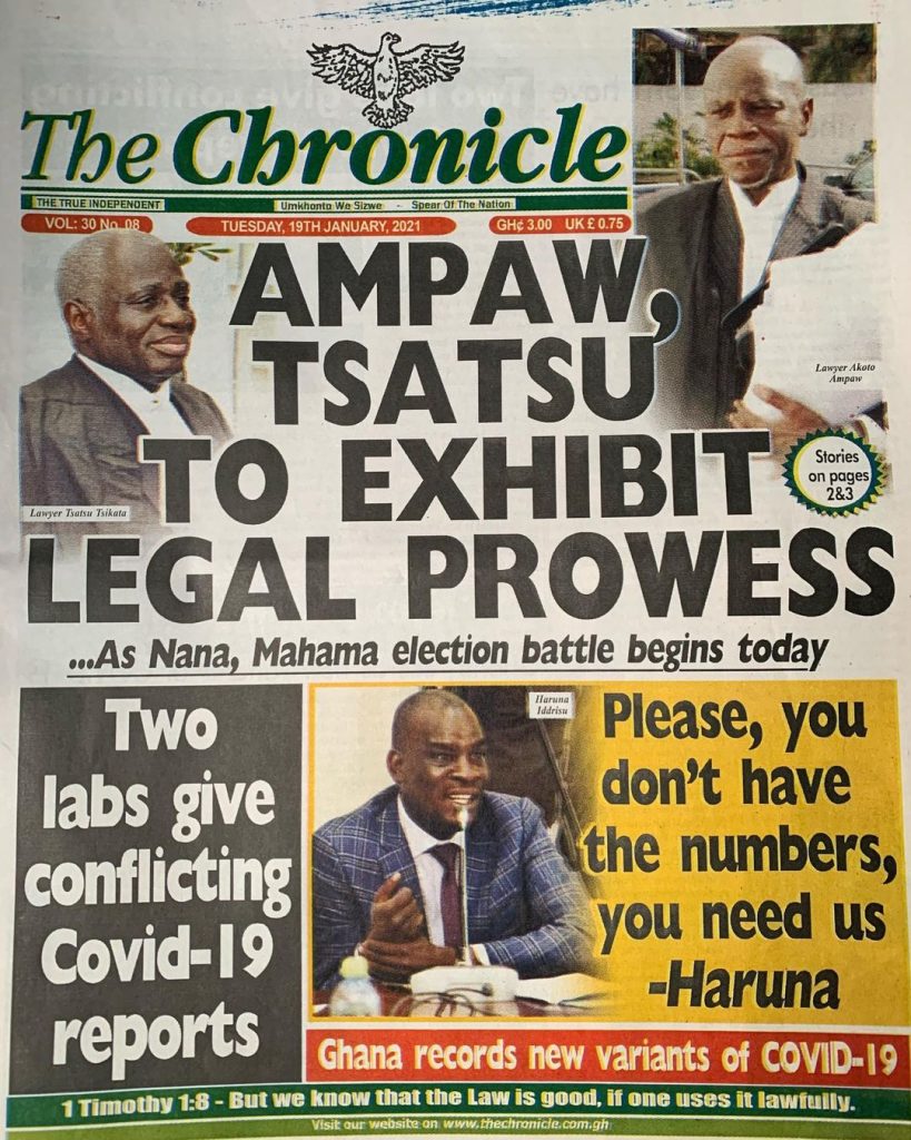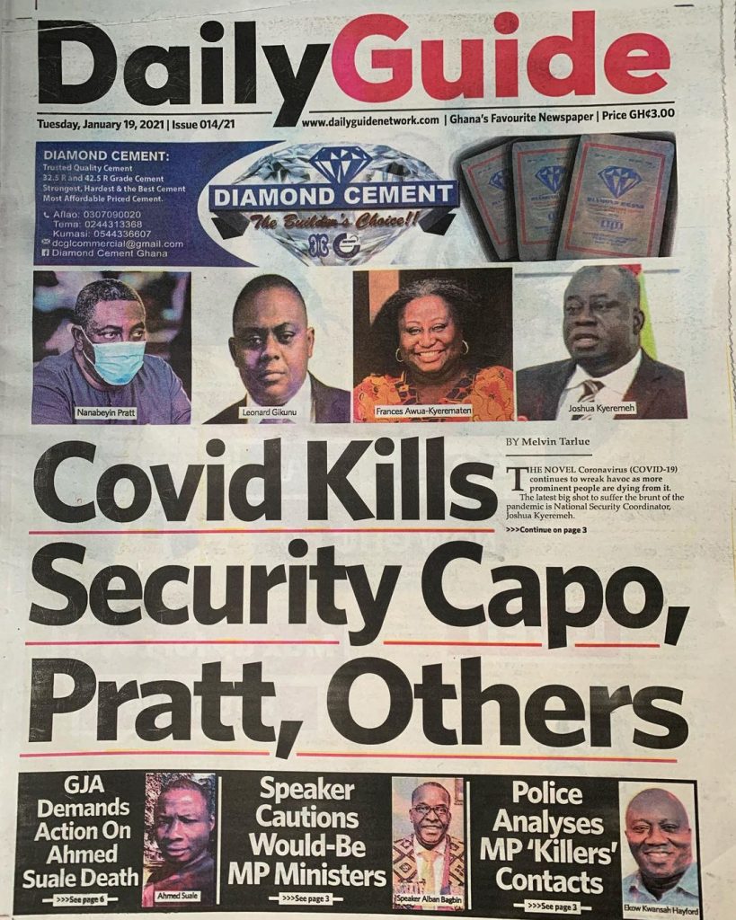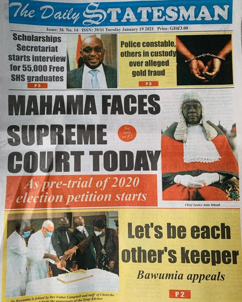 Ghana Newspaper Headline for today: Monday, January 19, 2021.