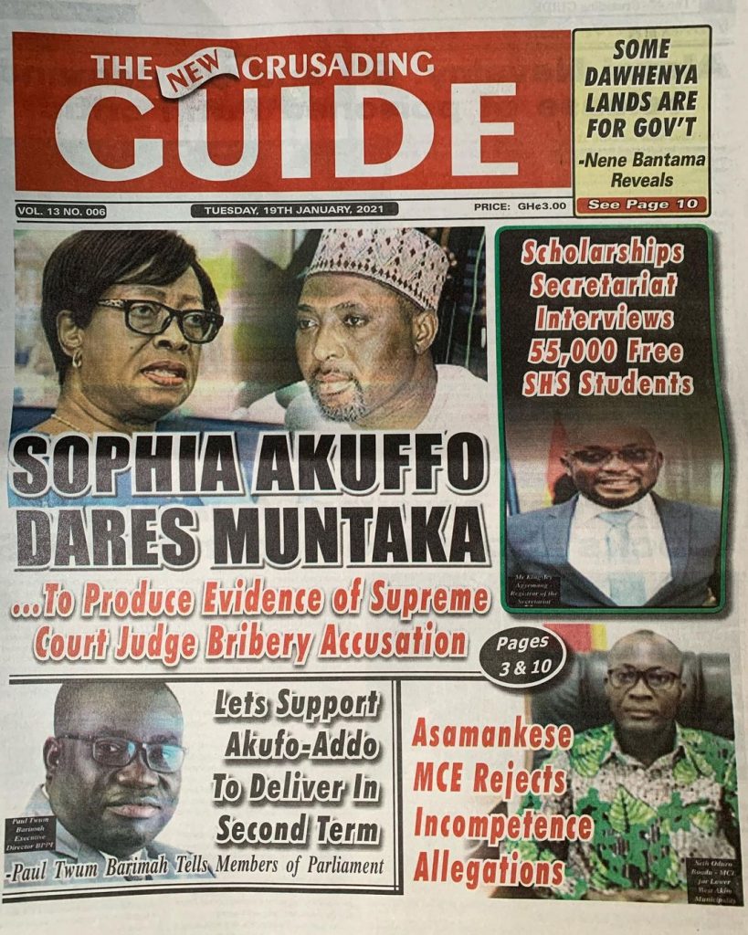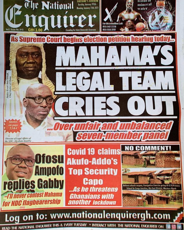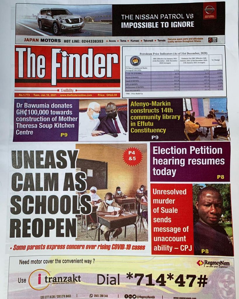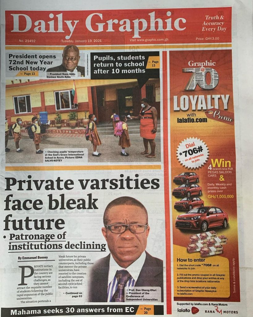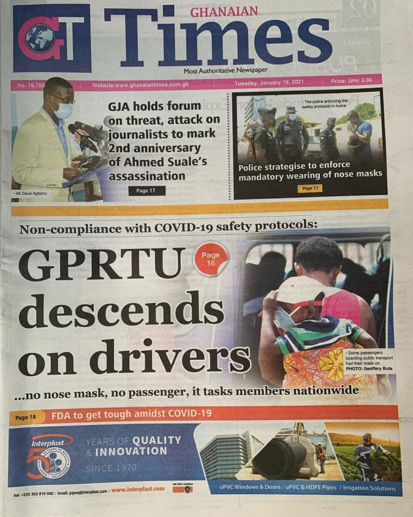 Ghana Newspaper Headline for today: Monday, January 19, 2021.