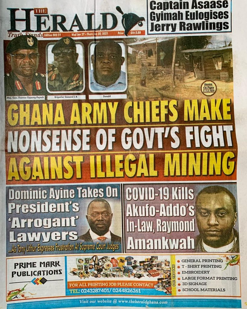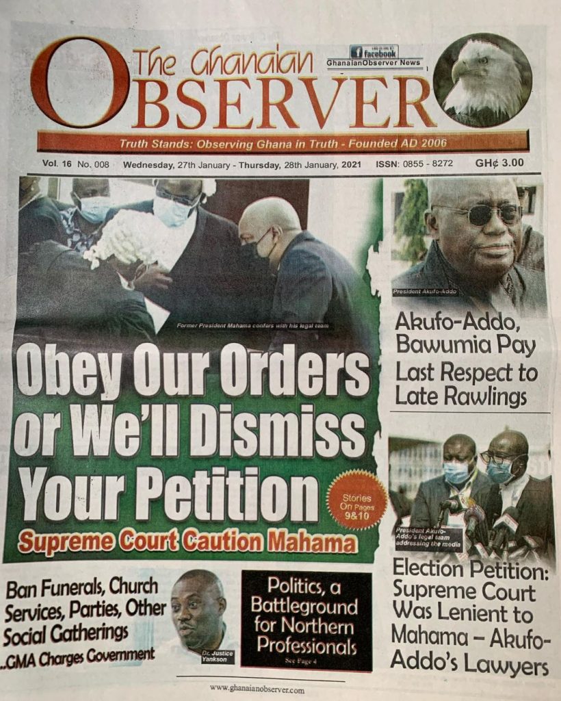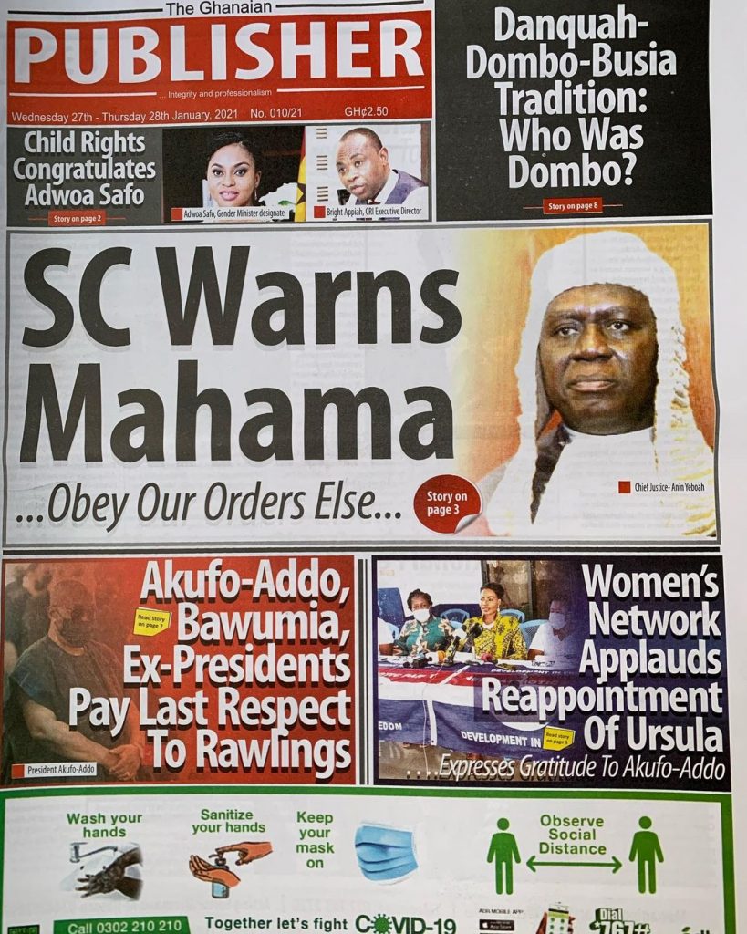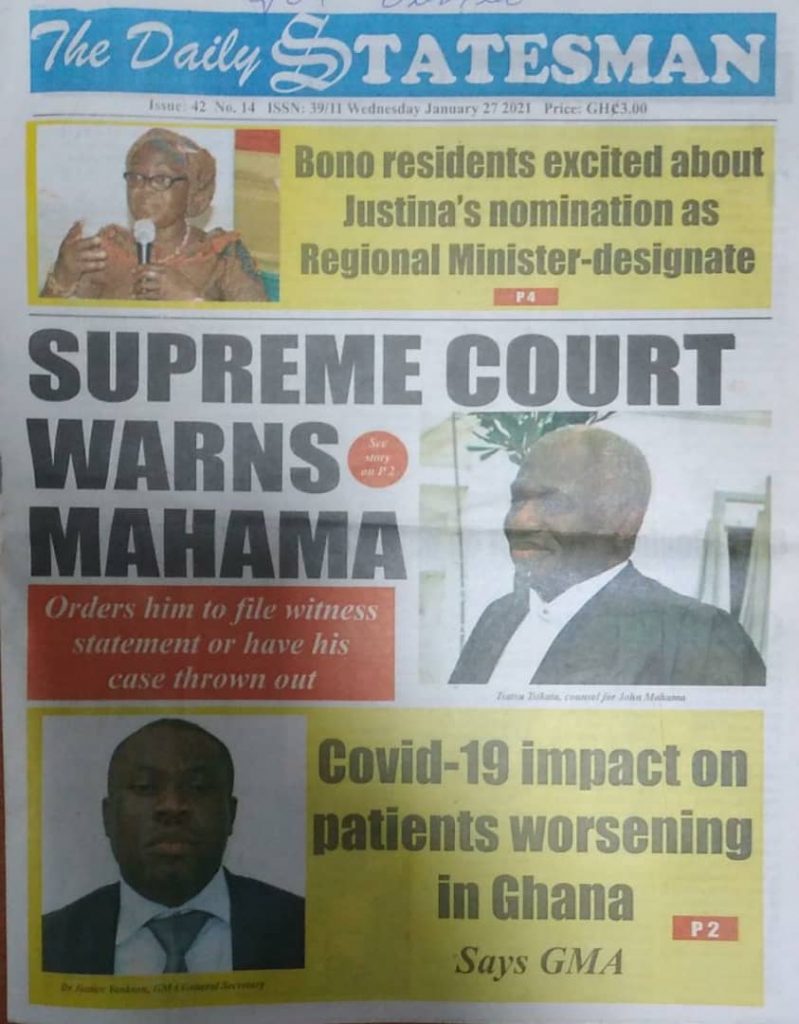 Ghana Newspaper Headline for today: Wednesday, January 27, 2021.