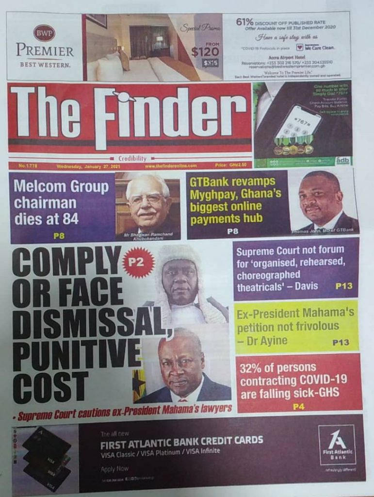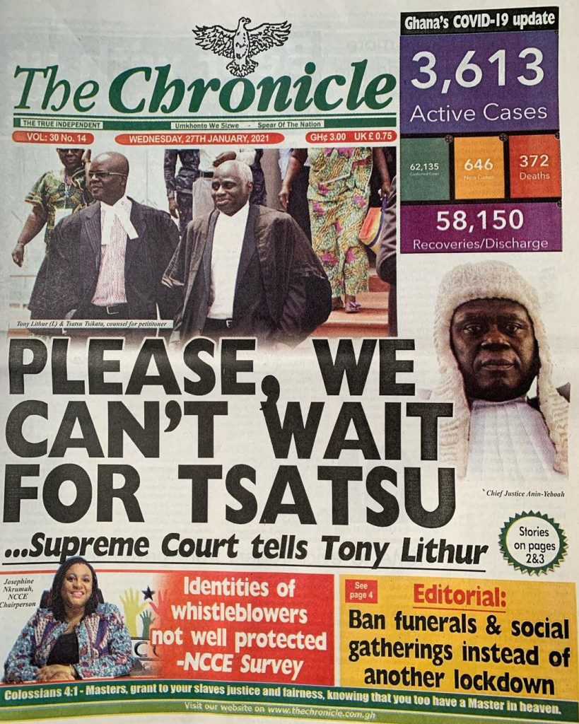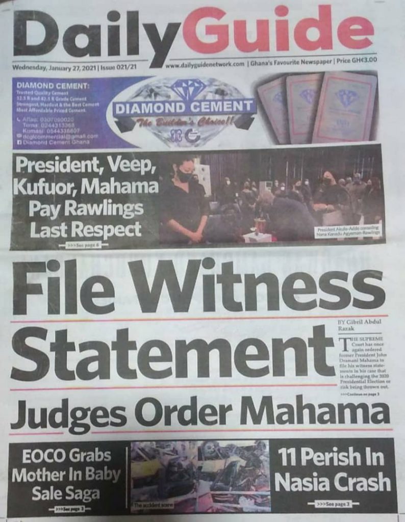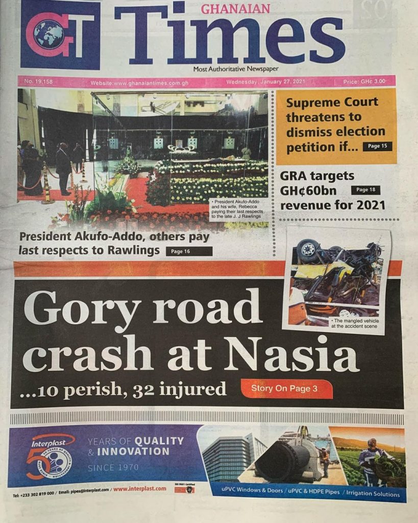 Ghana Newspaper Headline for today: Wednesday, January 27, 2021.
