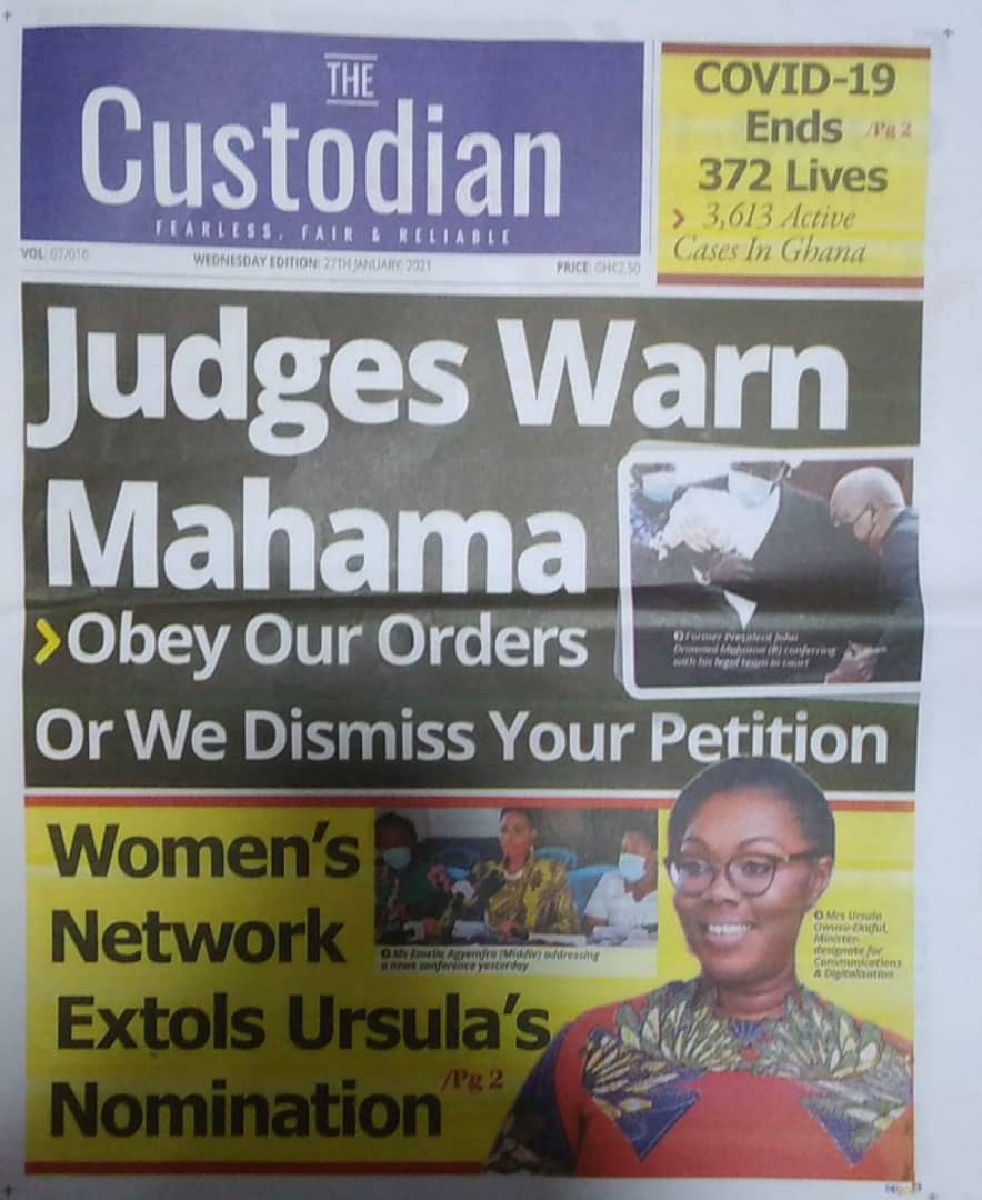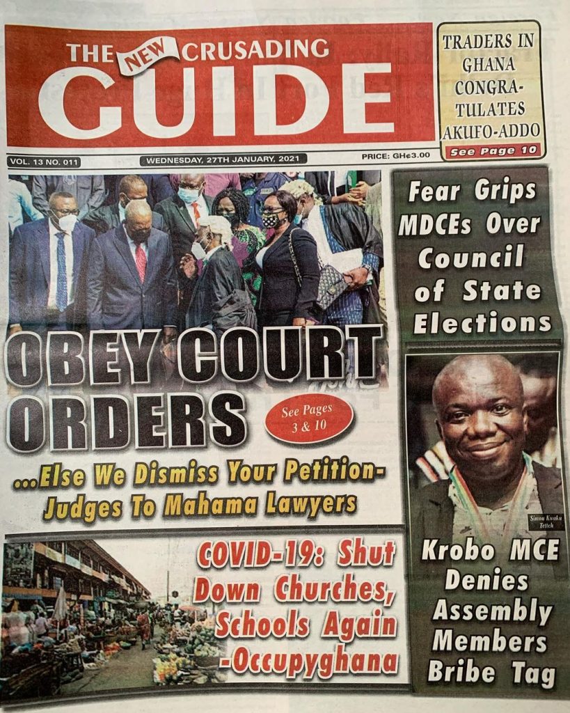 Newspaper Headlines: ‘Judges warn Mahama to obey court orders’