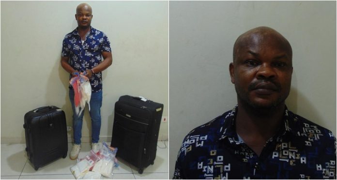 NACOC Officials picked him up as part of their daily routine where his narrations were found to be contradictory, leading to further checks on his luggage, revealing the concealed consignment in his luggage.