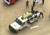 After the missile disappears, Kim celebrates with his two top aides shouting “hurray” and raising their hands.