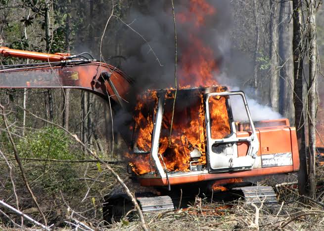 As part of the raid, they destroyed over 20 excavators while other mining equipment was set on fire as part of efforts to crack down on illegal mining in the Eastern Region.