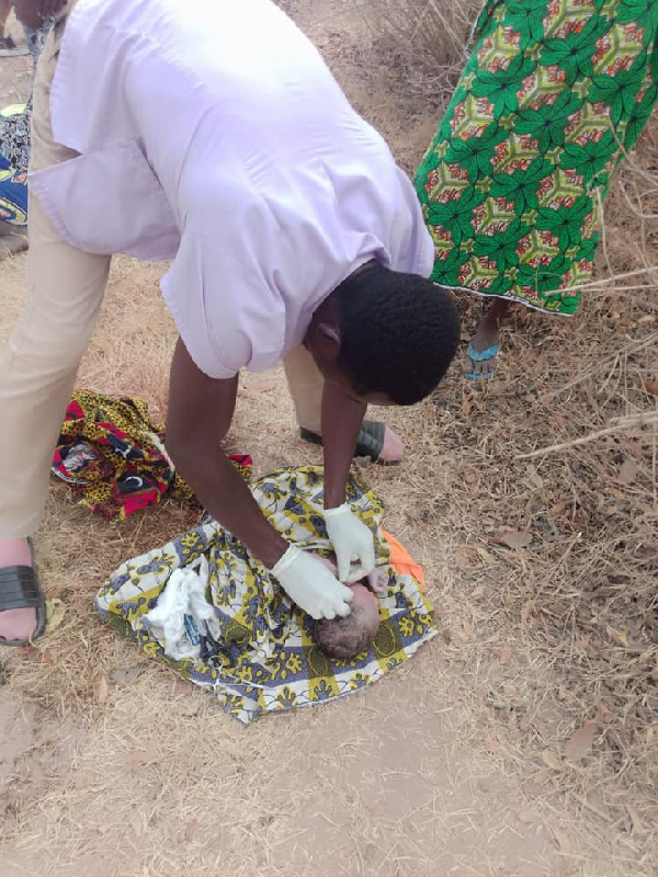 The nurse stationed at the Agyata CHPS Compound had to improvise and ensure the safe delivery of the baby in a bush when he and his assistant were called to duty in the early hours of Monday morning.