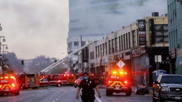 Some of them were on fire as they ran out of the building and they ripped off their protective equipment, leaving it on pavement along with melted helmets, Los Angeles Fire Department Captain Erik Scott was quoted as saying by the Associated Press news agency.