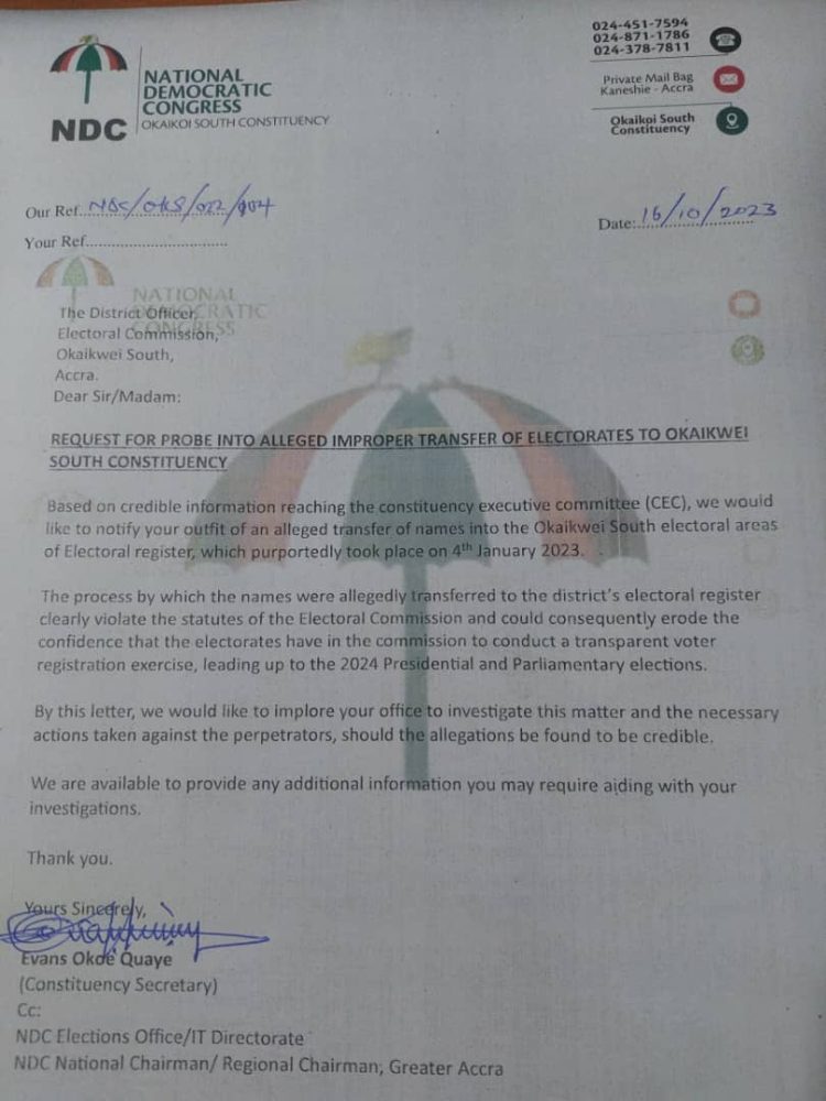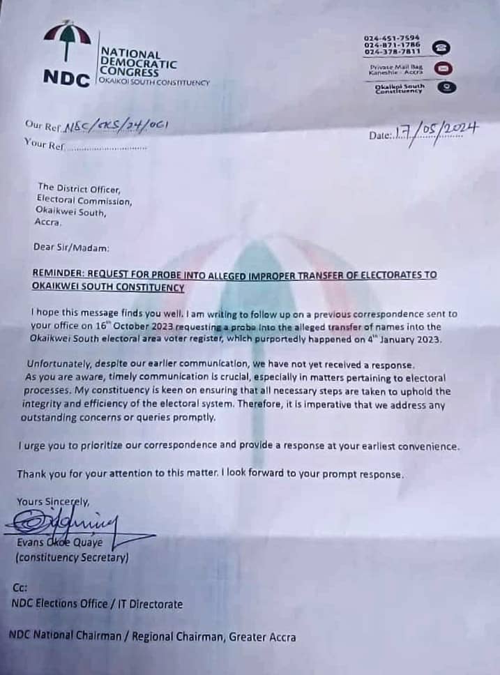 He mentioned that the NDC has sent two letters to the EC about the issue but has yet to receive a response. While he did not disclose their next steps, he urged the EC to address the discrepancies.