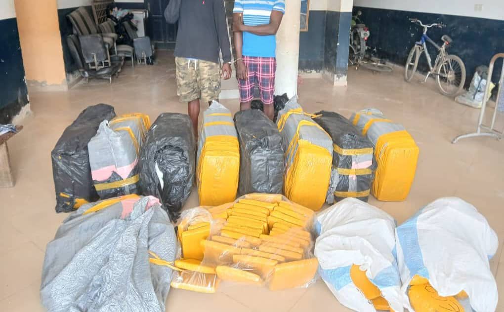 The suspects, identified as Eric Nkyeke, 30, and Francis Klu, 28, were caught red-handed. Police observed them offloading the illicit parcels from a Toyota Hilux pick-up truck, bearing registration number GS 6849-21, at a secluded location in Nyanyano. This swift action by the police prevented the suspected narcotics from entering the community.