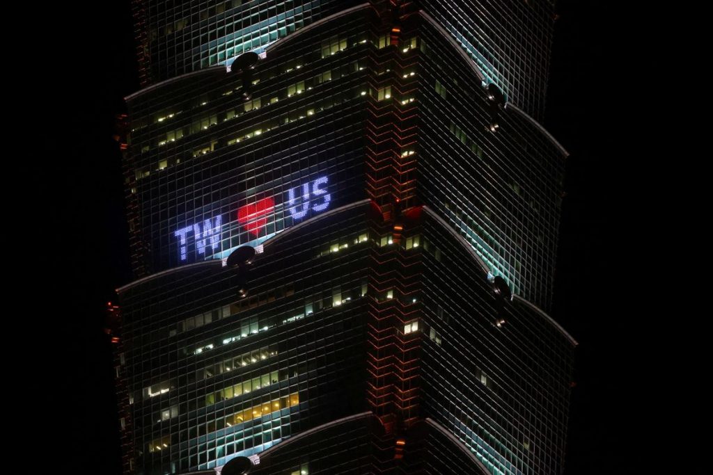 On Tuesday night, Taiwan’s tallest building, Taipei 101, lit up with messages including: “Welcome to Taiwan”, “Speaker Pelosi”, “Taiwan (heart) USA”.