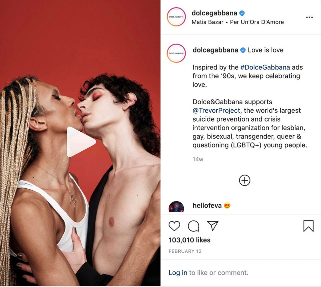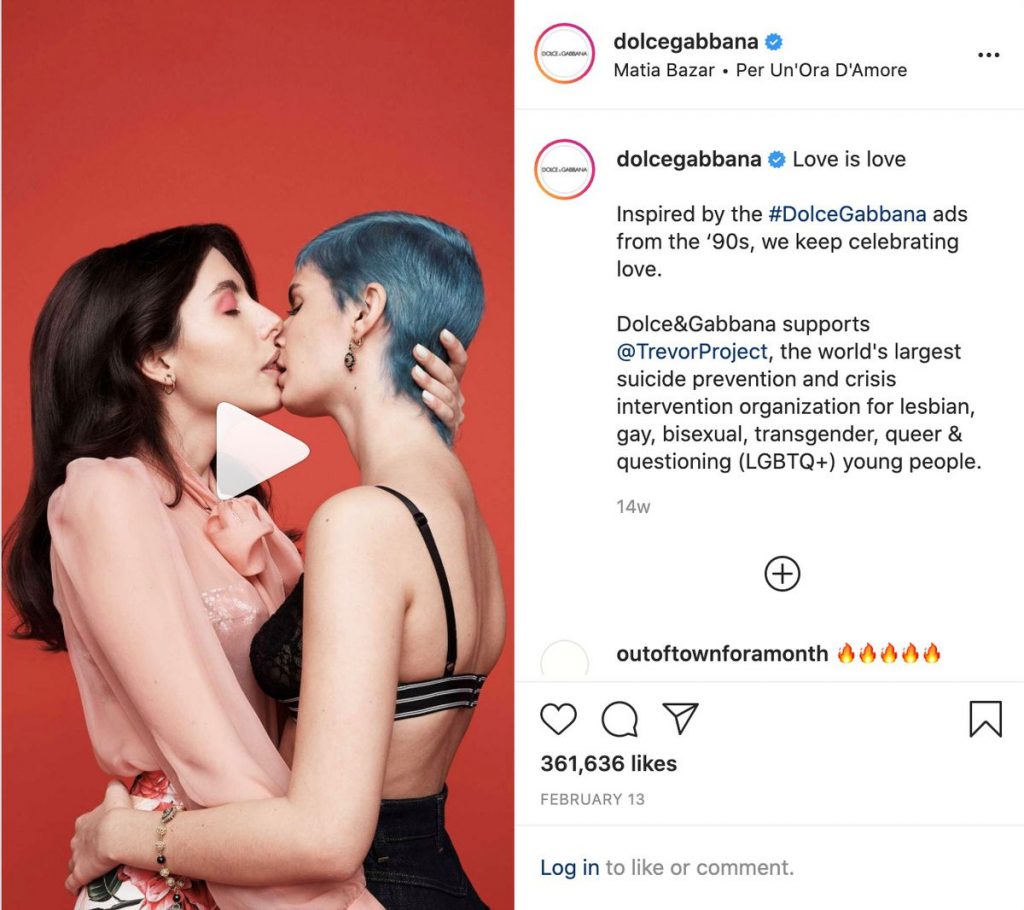 The two short videos were part of the Italian fashion house’s global “Love is Love” campaign in the run-up to Valentine’s Day.