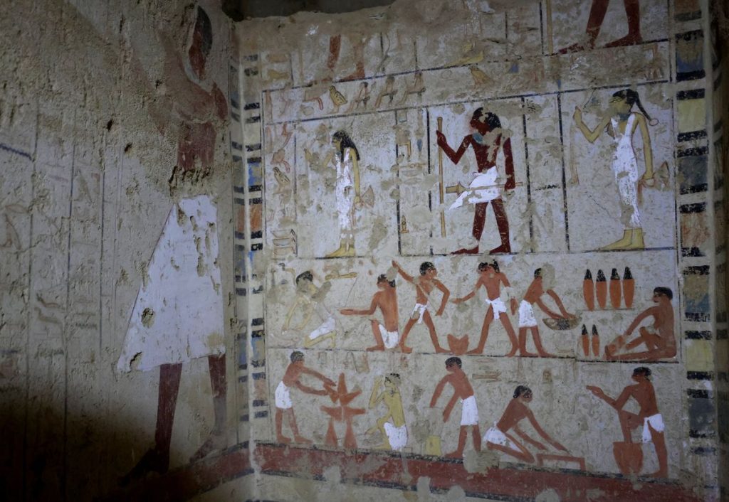 Among other tombs found was one belonging to Khnumdjedef, an inspector of officials, a supervisor of nobles and a priest during the reign of Unas, last pharaoh of the fifth dynasty. It was decorated with scenes of daily life.