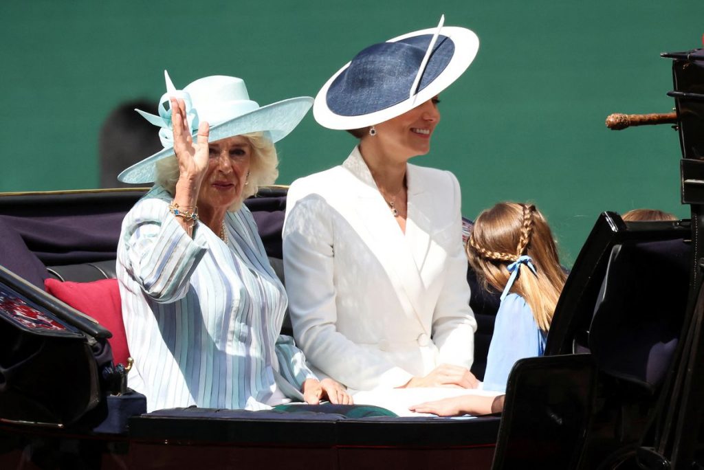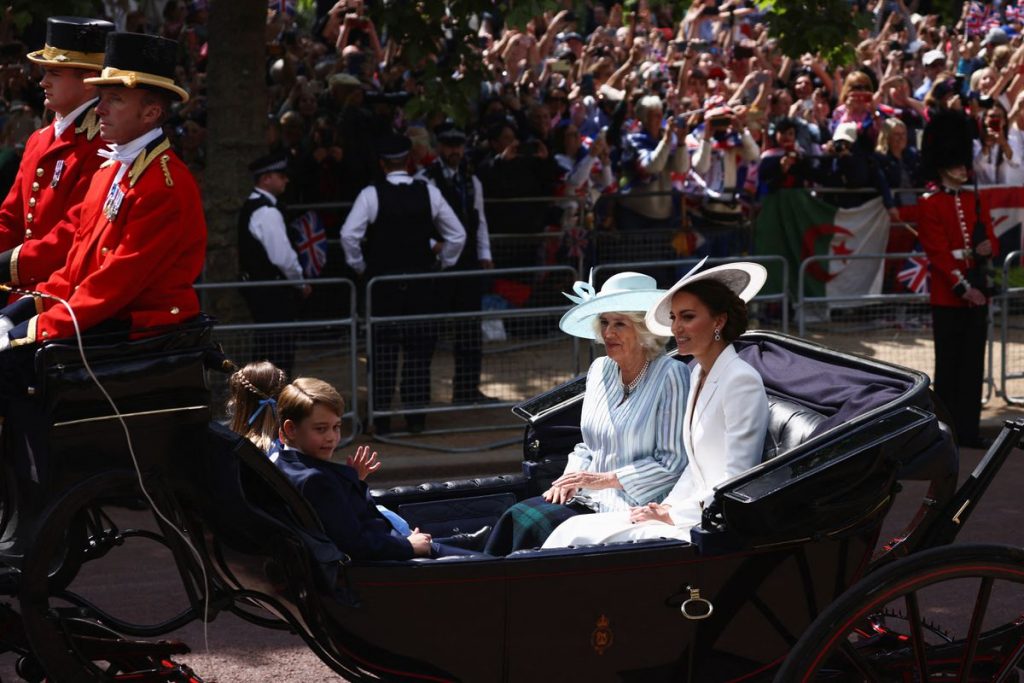 The crowds cheered as the royals watched a fly-past by modern and historic Royal Air Force planes. The queen’s great-grandchildren waved at the planes as they roared past overhead.