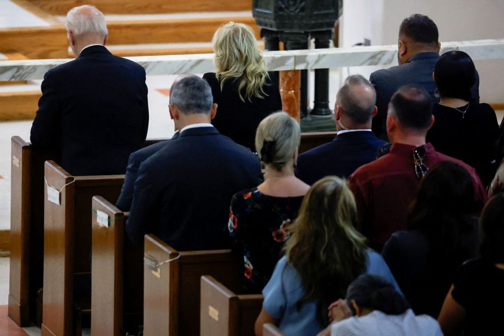 “Do something,” a crowd chanted outside Sacred Heart Catholic Church as Biden exited after attending mass.