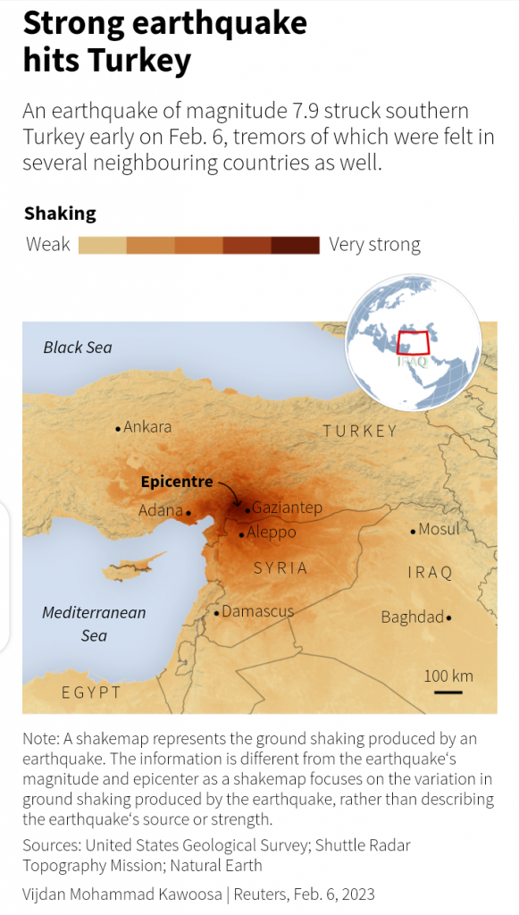 In Syria, already devastated by more than 11 years of civil war, a government health official said more than 237 people had been killed and some 600 injured, most in the provinces of Hama, Aleppo and Latakia, where numerous buildings tumbled down.