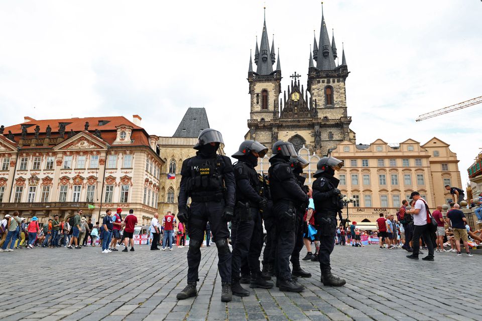 “Italy fans attacked West Ham fans in a bar on Rytirska street, injuring three,” Czech police said on Twitter. “A police officer was also attacked. We have restricted the personal liberty of 16 people.”