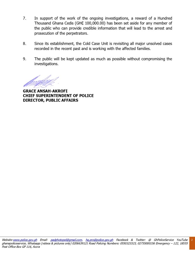 A police statement on Thursday also revealed that the case has been referred to the newly established cold case unit to expedite investigations into the incident.