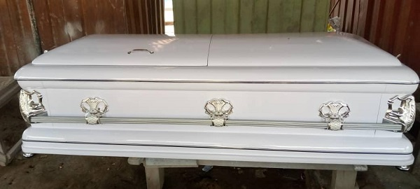 DSP Tenge said acting on a tip-off, he traced the white coffin valued GHC2, 200.00 to Korle Woko, where he found by the side of a body laid in state and ready to be put inside it.