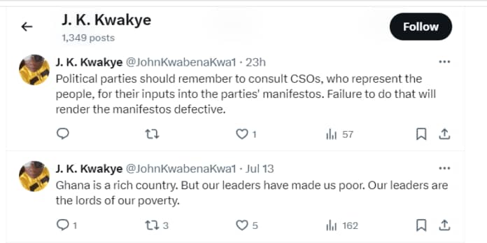 In a post on his X platform, Dr Kwakye said “Political parties should remember to consult CSOs, who represent the people, for their inputs into the parties’ manifestos. Failure to do that will render the manifestos defective.