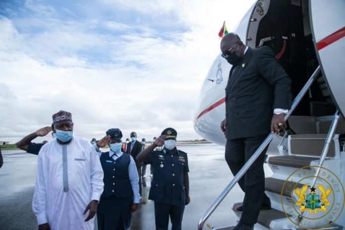 He is accompanied by the Minister for Foreign Affairs, Shirley Ayorkor Botchwey, and officials from the presidency and foreign ministry.