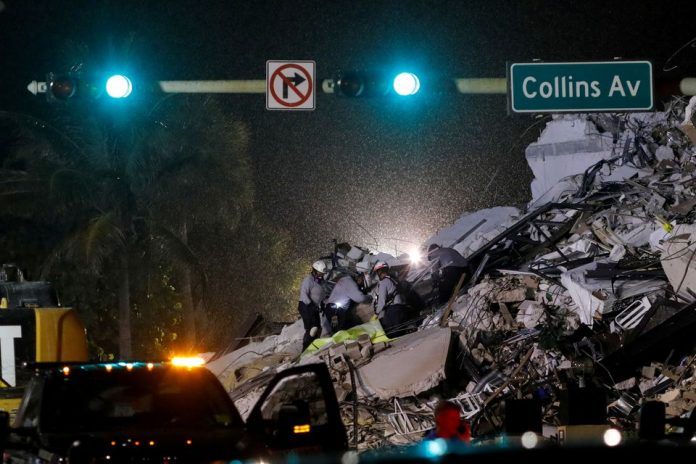 Rescue crews picked through tons of rubble on Thursday looking for survivors after the collapse of part of the oceanfront apartment tower in Surfside near Miami.