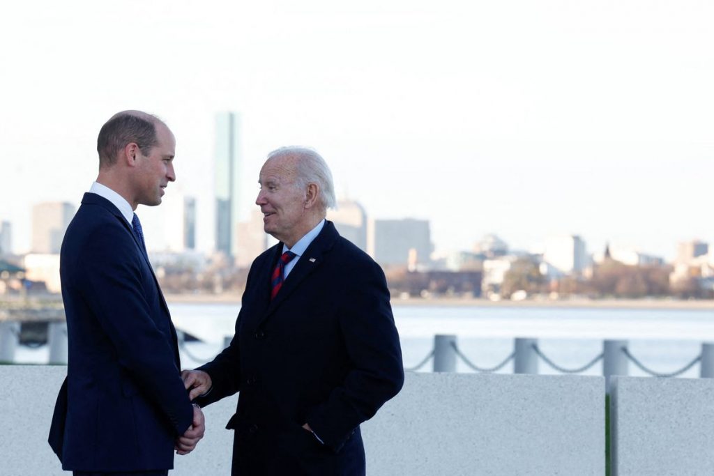 Prince William greeted U.S. President Joe Biden at Boston’s waterfront on Friday, the final day of a visit by British royals trying to focus attention on tackling environmental issues.