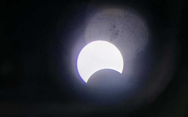 Israel’s sun-drenched skies dimmed partially Sunday morning with a rare “ring of fire” solar eclipse sweeping across Africa and Asia as the moon slid between the Earth in the sun in the first annular eclipse in years.