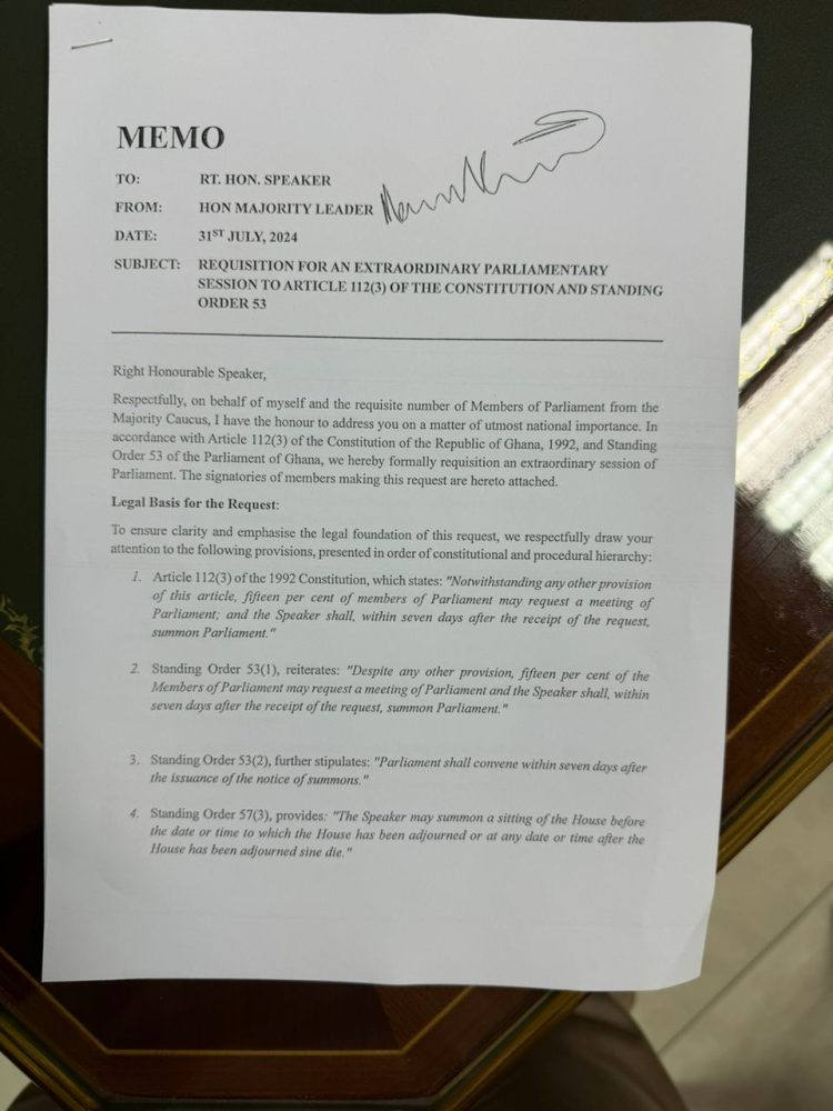 Mr Afenyo-Markin further stressed that the request was made in the utmost good faith and in the national interest, to enable the government to fulfil its constitutional and democratic obligations to Ghanaians.