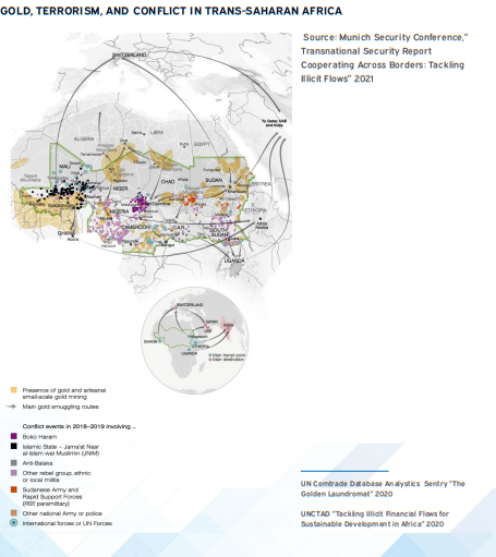 Its report on the global illicit economy noted that: “Local gold refineries are being extensively used to launder gold from illicit sources in an artisanal mining sector involving several million people, forced labor, and high risks.”
