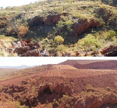 Juukan Gorge cave site: Top – before mining (2 June 2013); Bottom: just before destruction (15 May 2020)