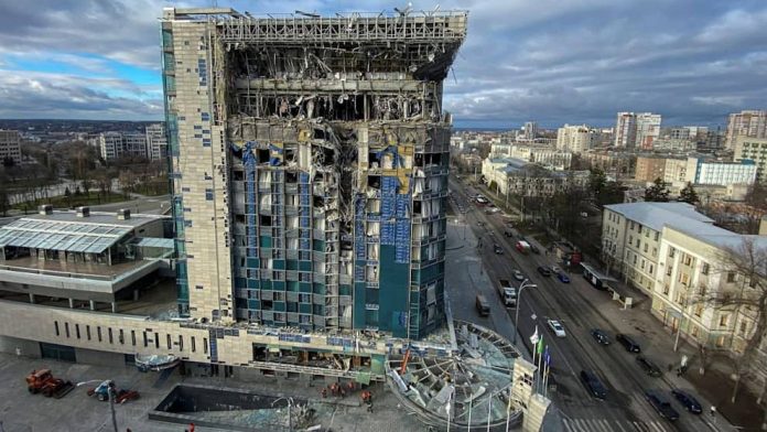 Russia’s statement said its attack hit the former Kharkiv Palace Hotel and the headquarters of the Ukrainian Security Service for the Kharkiv region.