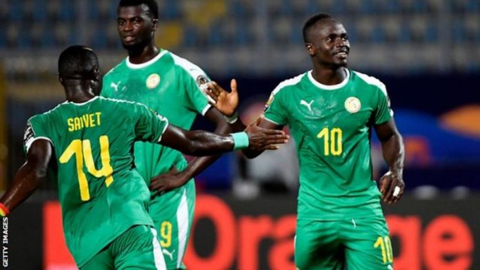 Sadio Mane scored twice as Senegal eased to a Group C victory over Kenya and booked their place in the last 16 of the Africa Cup of Nations.