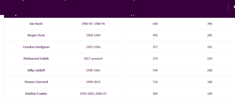 However, Salah still has a long way to go to challenge Ian Rush, the club’s all-time leading scorer, a feat that seems unlikely given Salah’s age (32) and his contract expiring next summer.