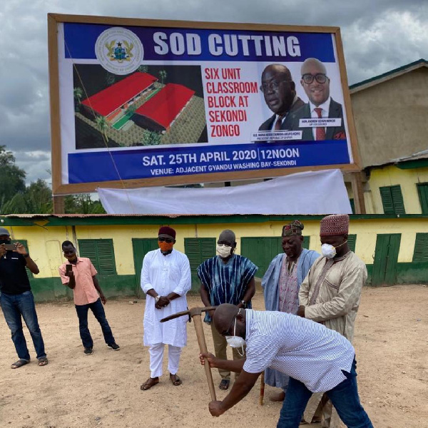 The Member of Parliament for Sekondi, Hon. Andrew Egyapa Mercer together with the Metropolitan Chief Executive for Sekondi Takoradi Metropolitan Assembly Hon Anthony KK Sam has cut the sod for the construction of an ultramodern Six Unit Classroom Block for the good people of Sekondi Zongo community.