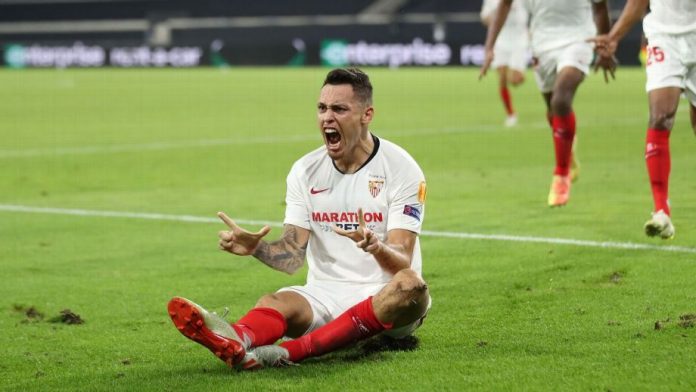 Ocampos rose to direct a cross from fellow Argentine Ever Banega past goalkeeper Rui Patricio in the 88th minute of the single leg match and earn five-times winners Sevilla a last-four clash with Manchester United.