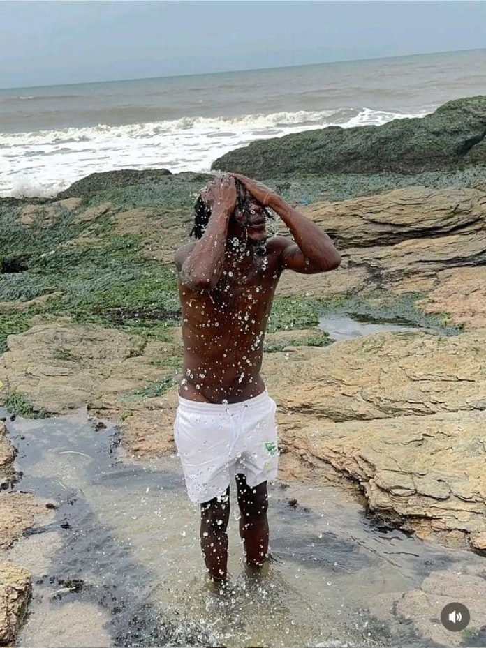 Dancehall star Shatta Wale, born Charles Nii Armah Mensah, has undergone a traditional spiritual cleansing at the Teshie Next Door Beach, just days after securing bail from the custody of the Economic and Organised Crime Office (EOCO).