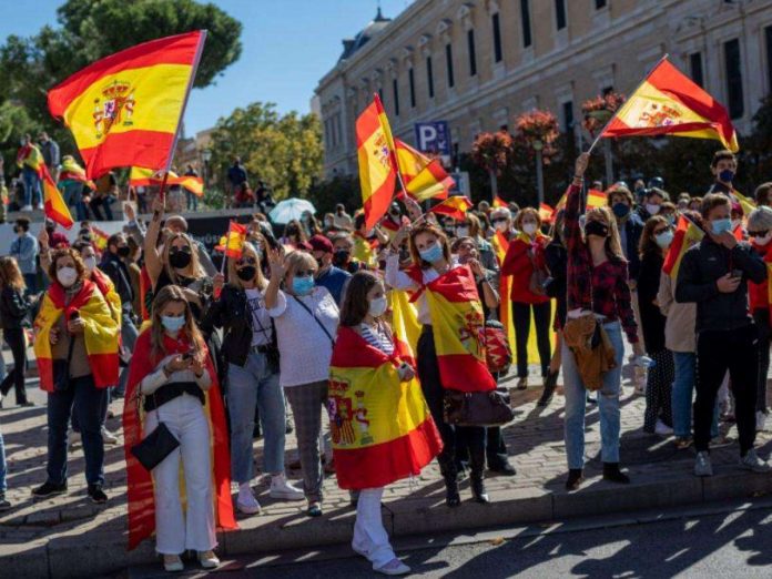Sunday’s protest escalated a standoff between Socialist Prime Minister Pedro Sanchez and the conservative-led Madrid regional government, on which Vox holds 12 of 132 seats, and which argues that the government’s curbs are illegal and excessive and will spell disaster for the local economy.