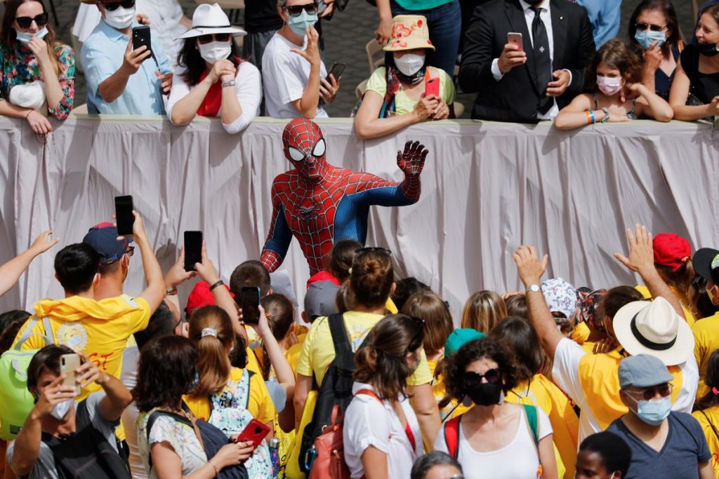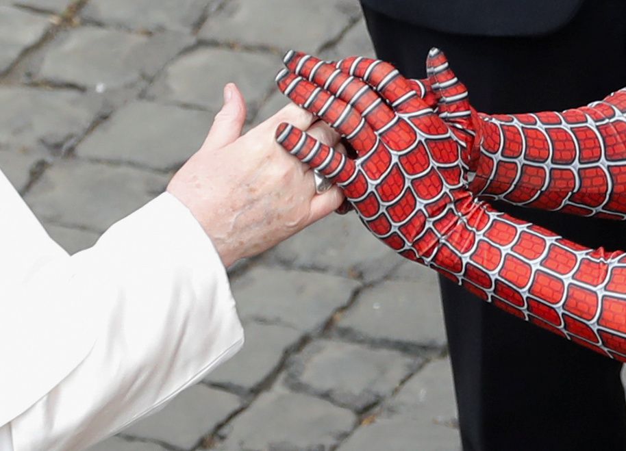 At the end of the audience, he was introduced to the pope and gave the pontiff a Spider-Man mask.