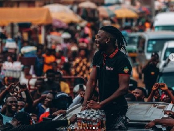 The musician and an entourage from Big Boss Energy Drink took to the principal streets of Ashaiman to announce the release of the new label while he was giving out free samples to crowd gathered.
