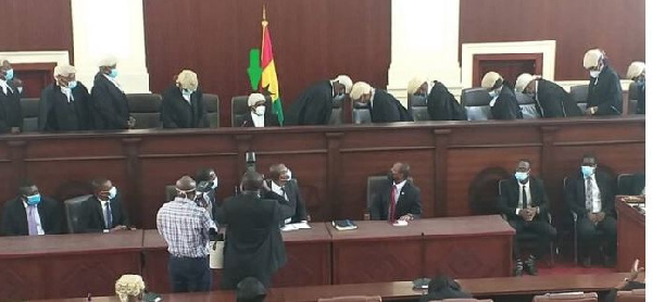 The emotionally looking Justice Gbadegbe eventually lost his voice in a packed courtroom with the remaining 16 justice of the apex court now before him including Chief Justice Kwasi An in Yeboah.