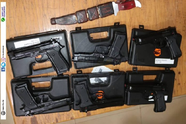 The operation led to the retrieval of six (6) new foreign-made ‘9mm Calibre Bruni 92’ pistols on April 7, 2022.