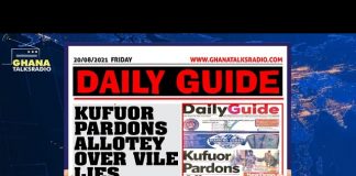 [W/E-20/8/21] GTR NEWSPAPER HEADLINES: Cocoa Production, Kufuor-Allotey, ¢200k Marine Drive, more