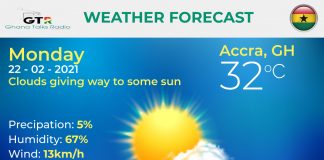 Ghana Weather forecast, alerts and UVB index, Monday 22 February 2021