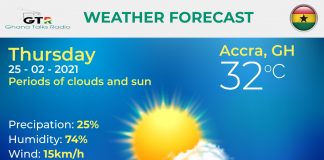 Ghana Weather forecast, alerts and UVB index, Thursday 25 February 2021