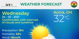 Ghana Weather forecast, alerts and UVB index, Wednesday 24 February 2021
