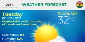 Ghana Weather forecast, alerts and UVB index, Tuesday 02 March 2021