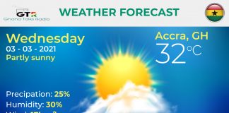 Ghana Weather forecast, alerts and UVB index, Wednesday 03 March 2021