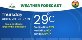 Ghana Weather forecast, alerts and UVB index, Thursday 08 July 2021