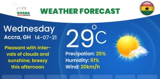Ghana Weather forecast, alerts and UVB index, Wednesday 14 July 2021